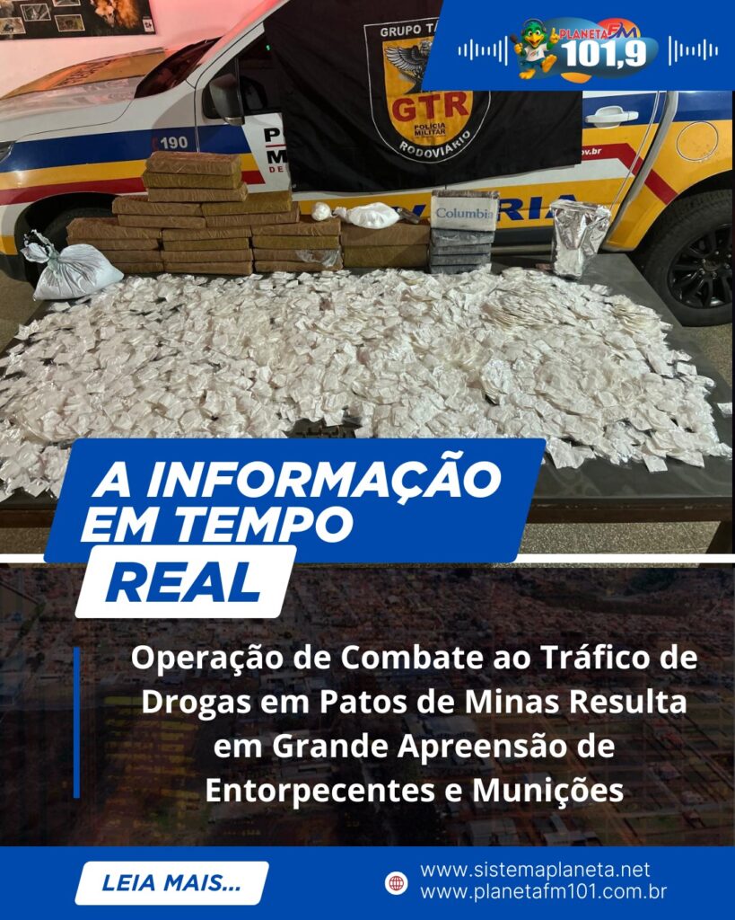 Polícia Militar Rodoviária apreende cocaína, maconha e munições de uso restrito durante fiscalização em ônibus na BR-146 Durante uma operação de combate ao tráfico de drogas, roubo de carga e recaptura de foragidos da justiça, realizada no km 01 da BR-146, no município de Patos de Minas, o Grupo Tático Rodoviário abordou um ônibus com origem em São Paulo e destino à cidade de Taiobeiras, no norte de Minas Gerais. Durante a vistoria no interior do veículo, foi encontrada uma mochila preta e uma caixa de papelão atrás das últimas poltronas, no lado esquerdo. Dentro da mochila, os policiais localizaram 01 tablete de pasta base de cocaína, mais 3 porções de pasta base de cocaína, pesando aproximadamente 01 kg cada uma, além de 5.000 (cinco mil) papelotes de cocaína. Na caixa de papelão, foram encontradas 21 (vinte e uma) barras de maconha, com aproximadamente 01 kg cada. Durante a inspeção nas bagagens dos passageiros, foi descoberta uma bolsa no porta-malas, pertencente a um homem de 30 anos, cujo destino também era Taiobeiras – MG. Dentro dessa bolsa, estavam 04 (quatro) barras de pasta base de cocaína, 01 porção pequena de cocaína de aproximadamente 200 gramas, 01 pequeno tablete de maconha e 12 (doze) munições intactas de calibre 9mm, de uso restrito. A mochila com a cocaína e a caixa com a maconha estavam localizadas atrás da poltrona do passageiro identificado como responsável. O valor total da droga apreendida é estimado em aproximadamente R$ 700.000,00 (setecentos mil reais). Diante dos fatos, o autor foi preso em flagrante delito, informado de seus direitos constitucionais e encaminhado à Delegacia de Polícia (Depol) de plantão em Patos de Minas, juntamente com toda a droga e munições apreendidas. Acompanhe nas redes sociais: 🚔 Polícia Militar Rodoviária: Os Anjos da Guarda dos Caminhos de Minas🚔 Link para redes sociais 🚔 2025: 54 anos cuidando da sua segurança nos caminhos de Minas. 🚔