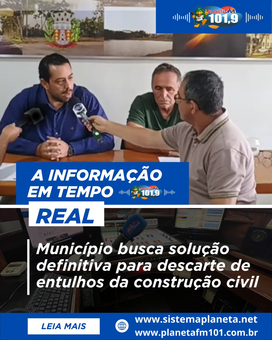 A situação do descarte de entulhos da construção civil em Carmo do Paranaíba foi tema de entrevista concedida à Rádio Planeta 101.9, com a participação do secretário municipal de Meio Ambiente, Delmo Carneiro, e do prefeito Lucas Mendes. Durante a conversa, as autoridades esclareceram o histórico do problema, as responsabilidades legais e as ações que estão sendo tomadas para resolver a questão de forma definitiva.