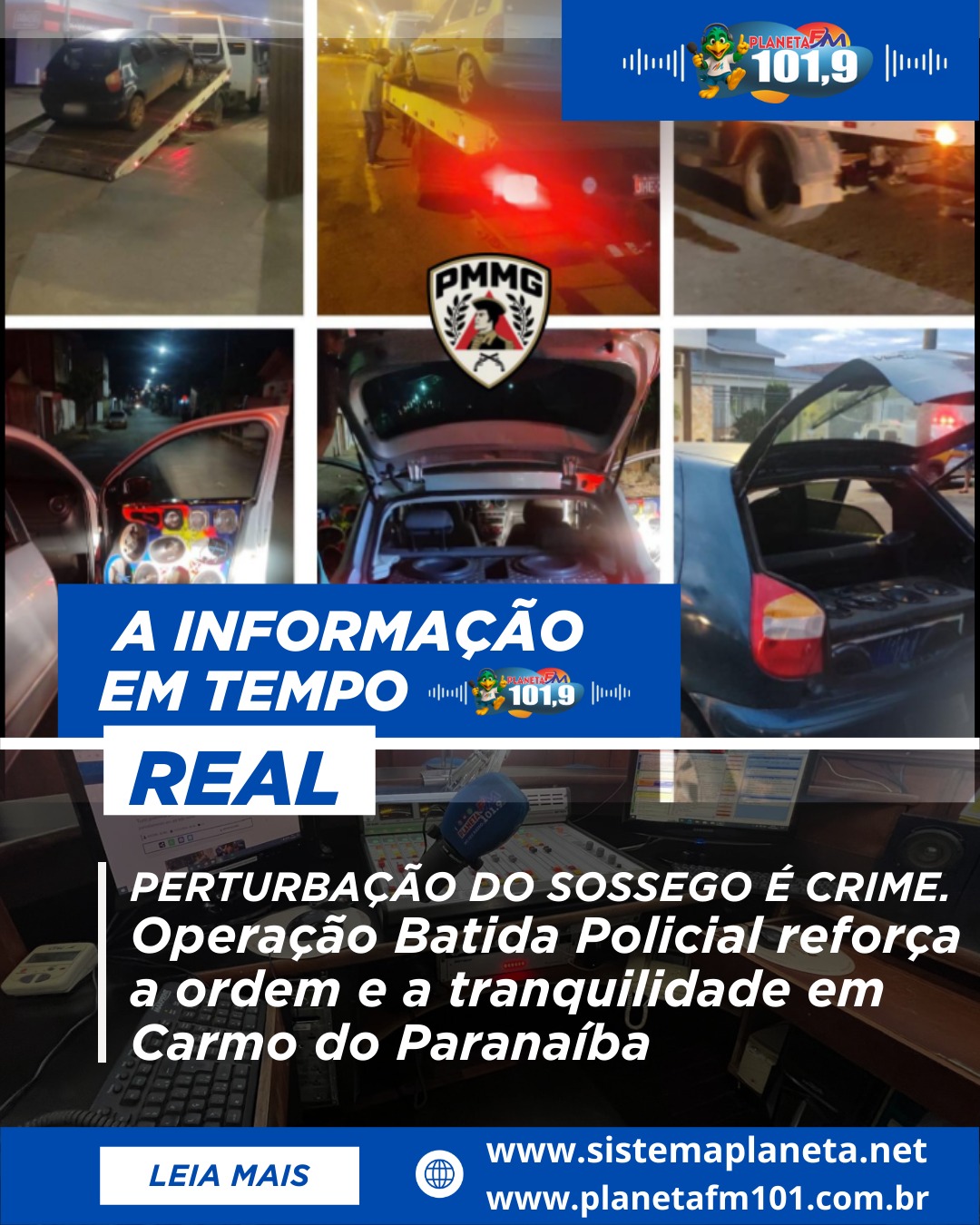 Durante a operação, 03 autores foram conduzidos por utilizarem som veicular em volume excessivo, caracterizando o delito de Perturbação do Sossego.