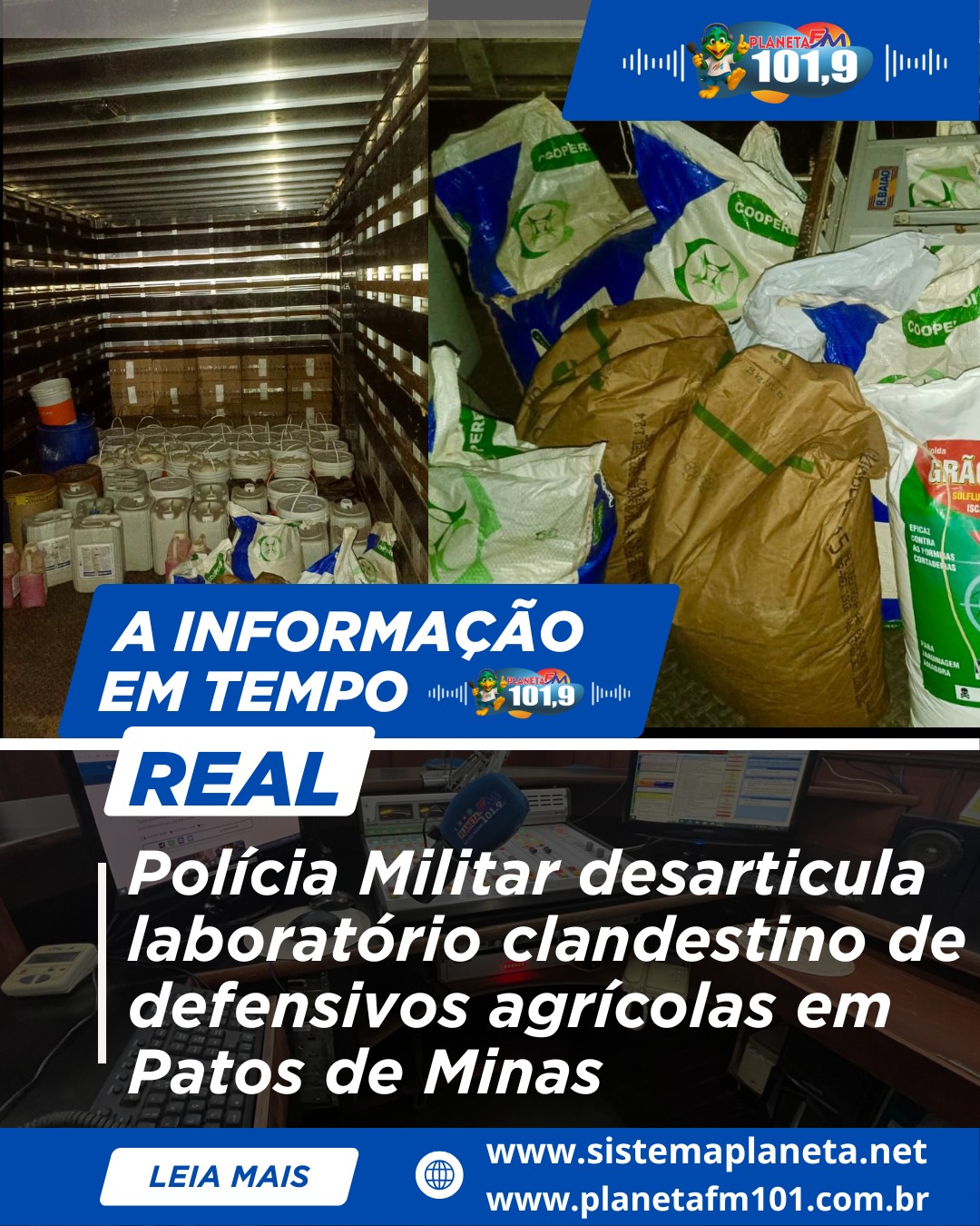 A Polícia Militar desarticulou, na tarde de quinta-feira (15), um laboratório clandestino de manipulação e fracionamento de defensivos agrícolas no bairro Cristo Redentor, em Patos de Minas. A ação foi desencadeada após denúncias anônimas de moradores, que relataram movimentação atípica em um imóvel, com intenso fluxo de pessoas — inclusive no período noturno — além de forte odor característico de produtos químicos.